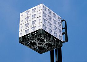 Industrial ISO size plastic pallet with cruciform perimeter base. Very strong pallet for 40 years!
