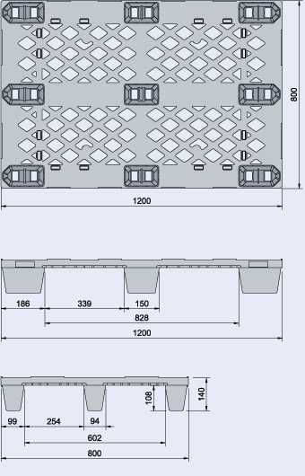 Nestable Euro export plastic pallet for medium duty loads. Reduces freight charge by volume saving: 22 plastic pallets = 1m high