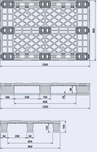 Euro medium duty export plastic pallet with snap-on skids. Reduces freight charge by self assembly of snap-on skids: volume saving up to 70 %. Rent now from USD$0.07/pallet/day!